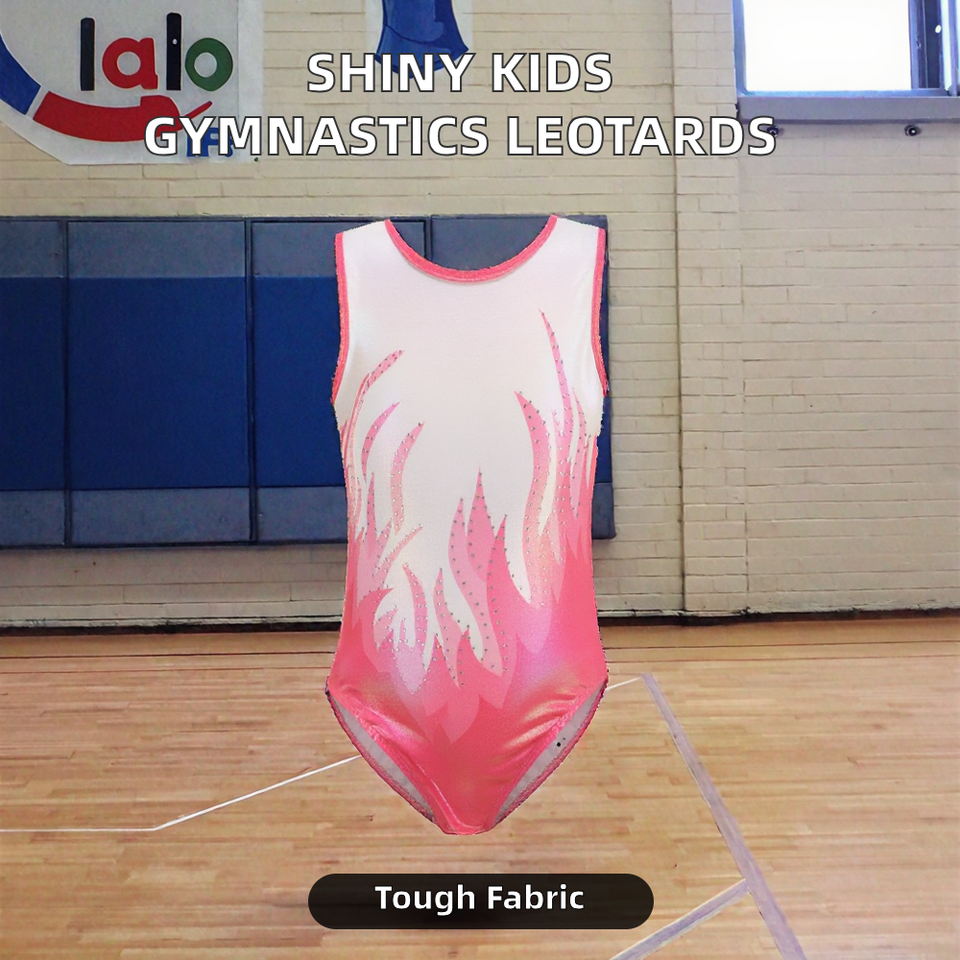 ชุดรัดรูปยิมนาสติกแขนกุดแวววาวสำหรับเด็กเด็กผู้หญิงผ้าสแปนเด็กซ์เนื้อนุ่มดีไซน์เปลวไฟ