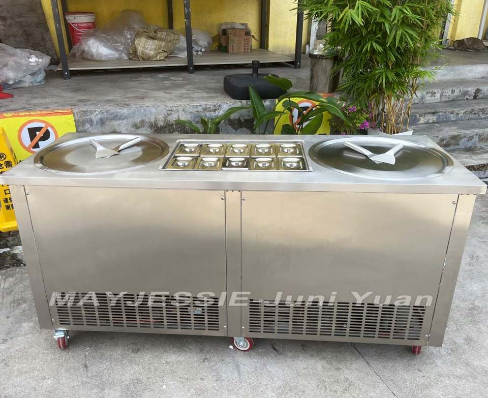 Double pan fried ice cream machine