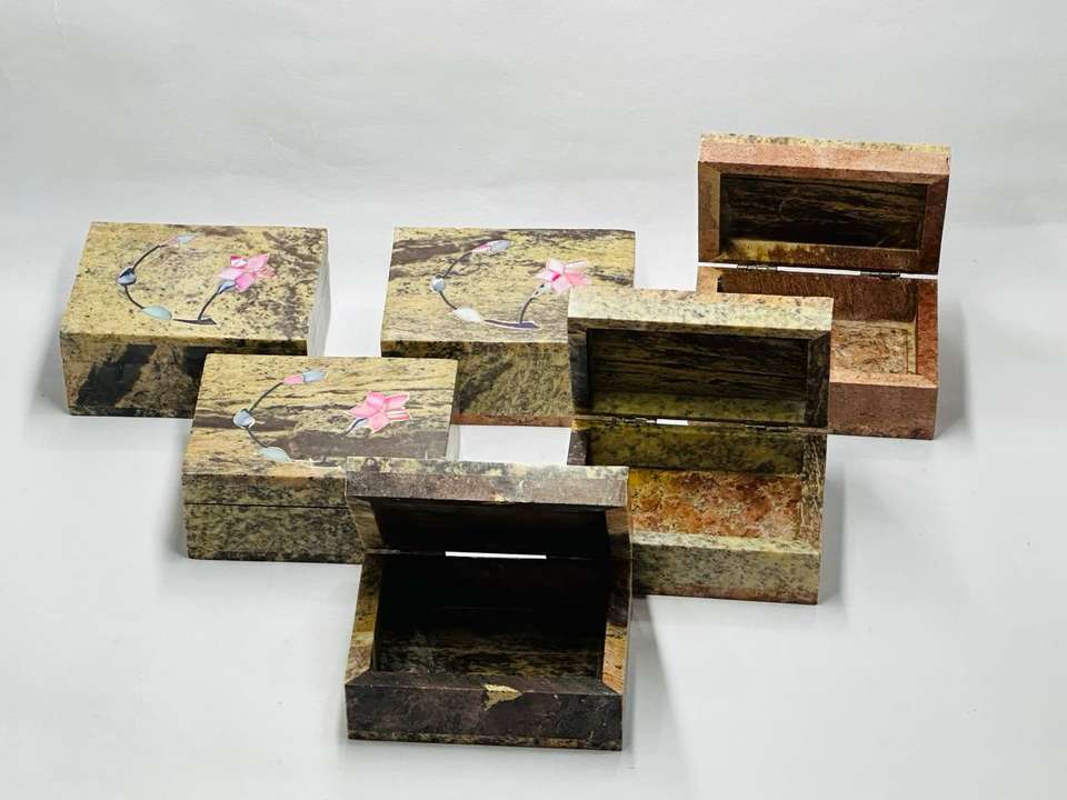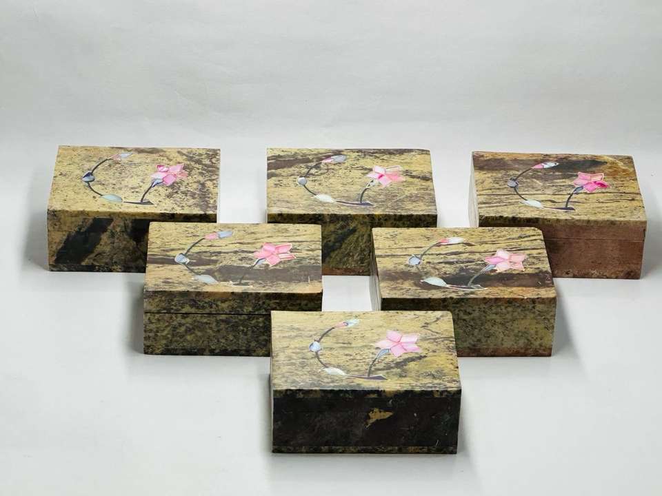 ลดกระหน่ำทำด้วยมือหินสบู่ผสมแม่ของไข่มุกฝังกล่องเครื่องประดับสำหรับวัตถุประสงค์ในการให้เป็นของขวัญกล่องเครื่องประดับจากแม่ของไข่มุกฝัง