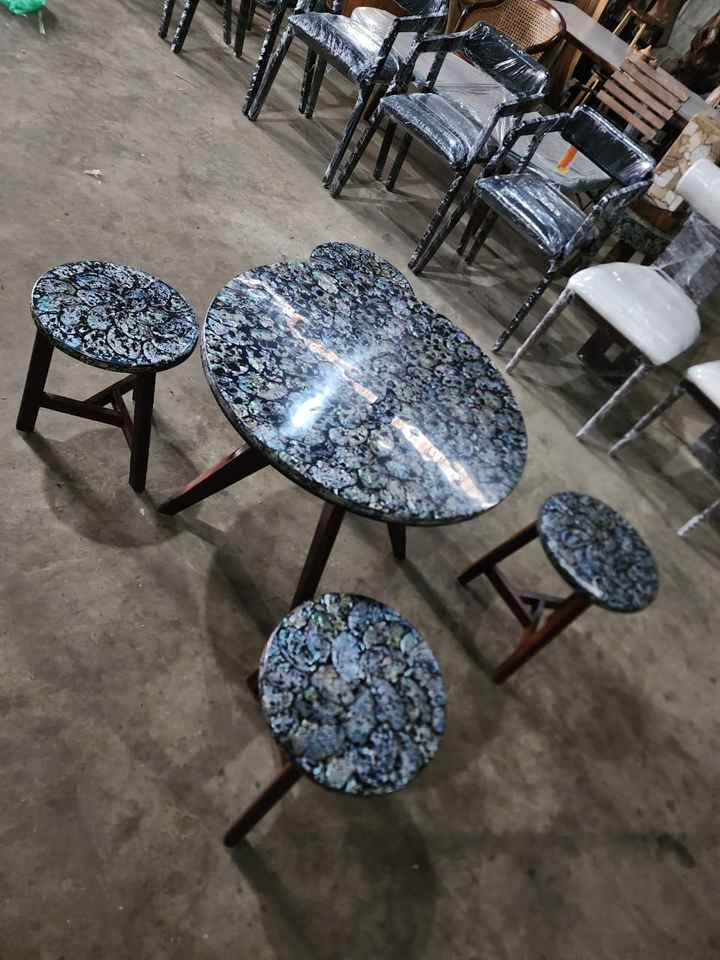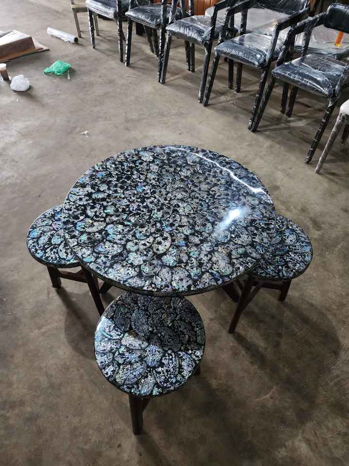 โต๊ะอาหารไม้เนื้อแข็งทำมือ 4 ที่นั่ง พร้อมเก้าอี้และท็อปเรซิ่น สำหรับใช้ในร่ม ระเบียง หรือห้องนั่งเล่น ลดราคาพิเศษ