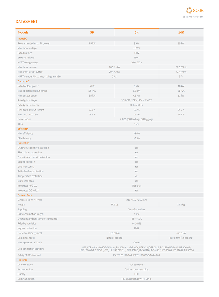 โซลิส S6-EH1P(3-8)K-L-PLUS ไฮบริดอินเวอร์เตอร์พลังงานแสงอาทิตย์6KW 5KW อุตสาหกรรมเชิงพาณิชย์8KW 3KW