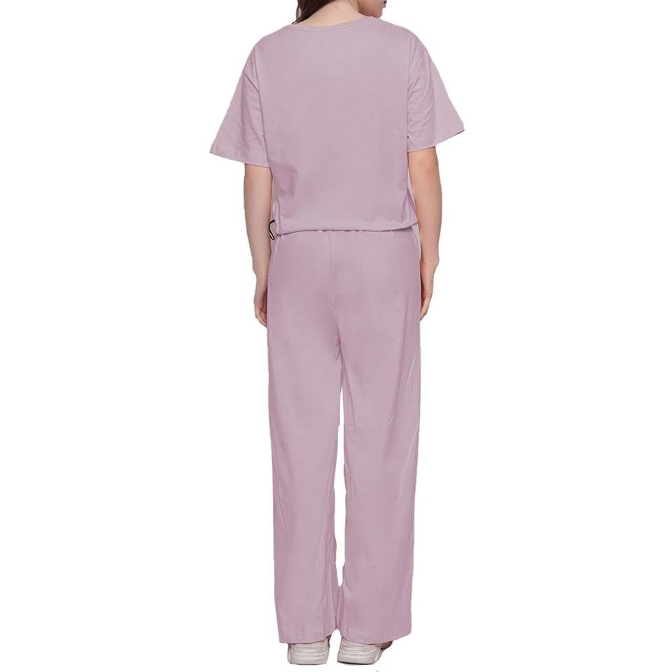 ชุดเซ็ตสองชิ้นลำลองสำหรับผู้หญิง สีพื้น แขนสั้น ความยาวเหนือเข่า กางเกงขายาวทรงบาน ผ้าฝ้าย 100% ลดราคาพิเศษสำหรับฤดูใบไม้ผลิและฤดูร้อน