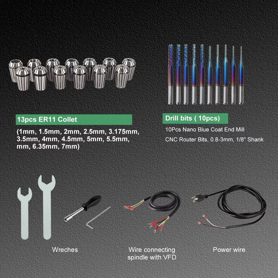 มอเตอร์แกนหมุน CNC ระบายความร้อนด้วยอากาศ กำลังไฟ 1.5KW ความเร็ว 24000 รอบต่อนาที รุ่น ER11 110V/220V พร้อมชุดอินเวอร์เตอร์ VFD และอุปกรณ์แกนหมุน ลดราคาพิเศษ