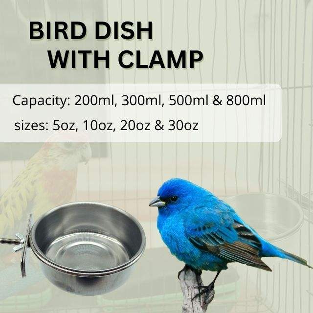 Hot Sale Stainless Steel Bird Cage Water Food Bowl Coop Cup with Clamp Holder for Parrots Cockatiel Budgies Parakeet Lovebird