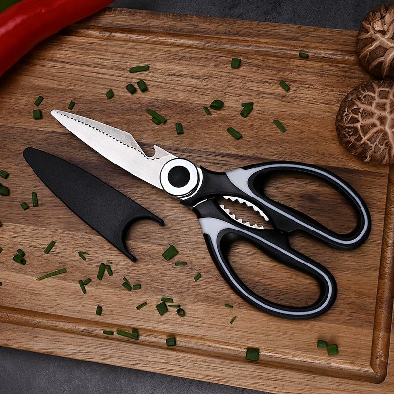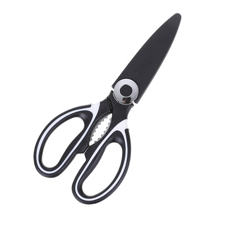 กรรไกรทำครัวสแตนเลสมีด้ามจับพลาสติกทนทานและฝาครอบ PP กรรไกรครัวอเนกประสงค์
