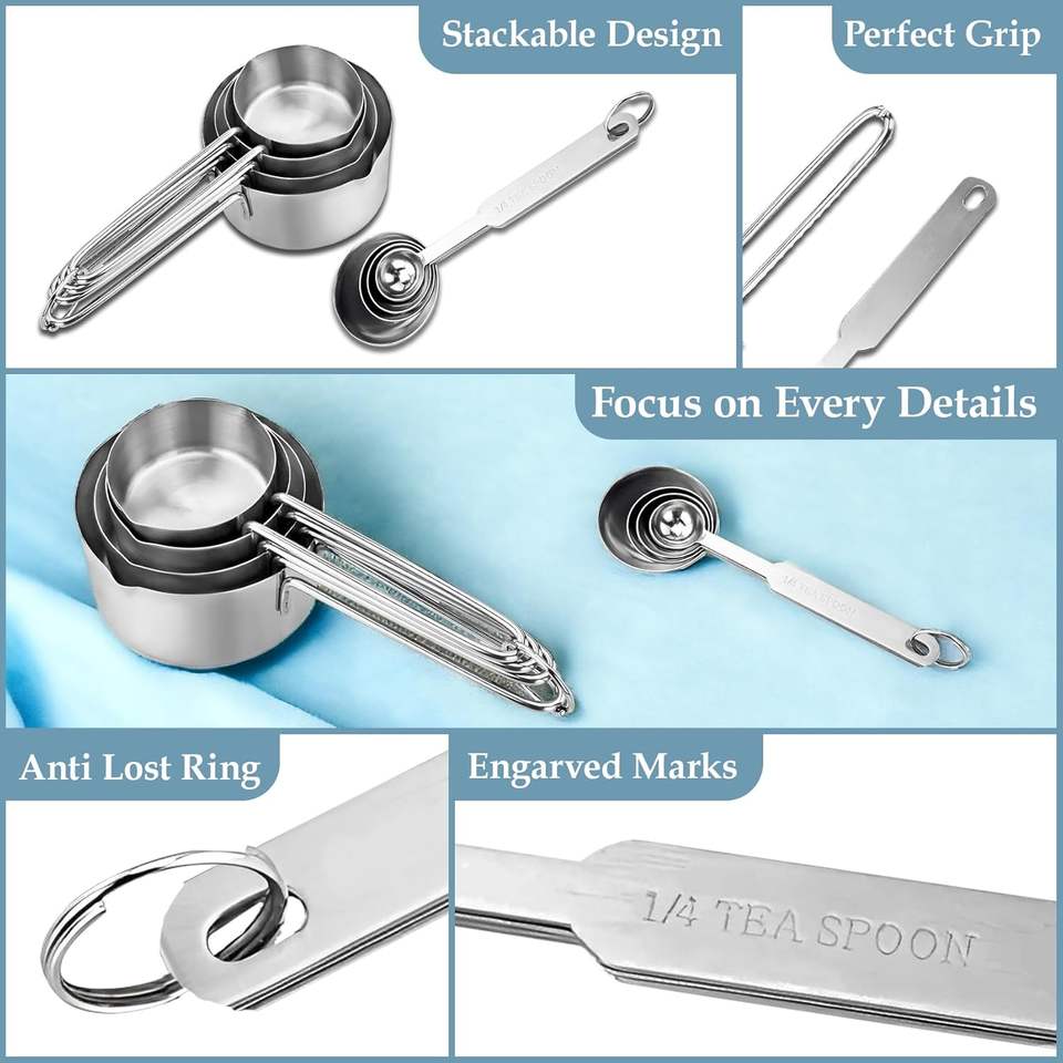 Stainless Steel Measuring Cup and Spoon Set of 8
