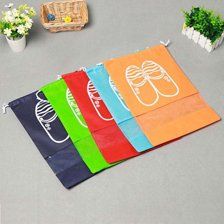 กระเป๋าใส่รองเท้าผ้าใยสังเคราะห์แบบผูกเชือกปากกระเป๋ารองเท้ากันฝุ่นกันฝุ่น