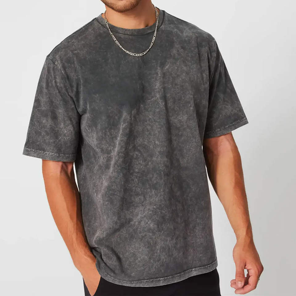 เสื้อยืดสำหรับผู้ชายผ้าคอตตอนซักด้วยกรดเสื้อแนวสตรีทแบบลำลอง100% สีจางลงแดดออกแบบได้ตามที่ต้องการ