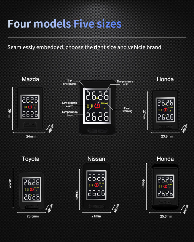 ระบบตรวจสอบแรงดันลมยางแบบไร้สายพร้อมเซ็นเซอร์ภายนอกสำหรับรถยนต์โตโยต้า มาสด้า นิสสัน ฮอนด้า TPMS ลดราคาพิเศษ