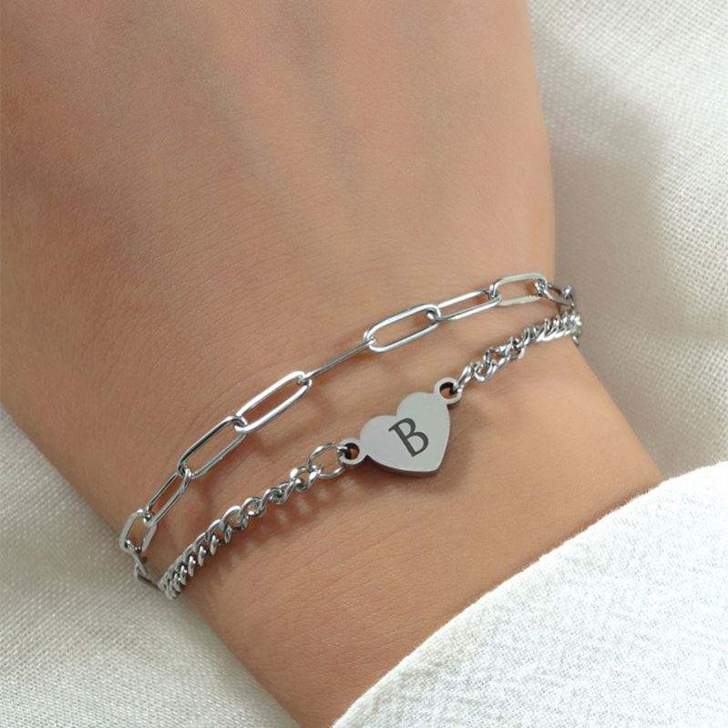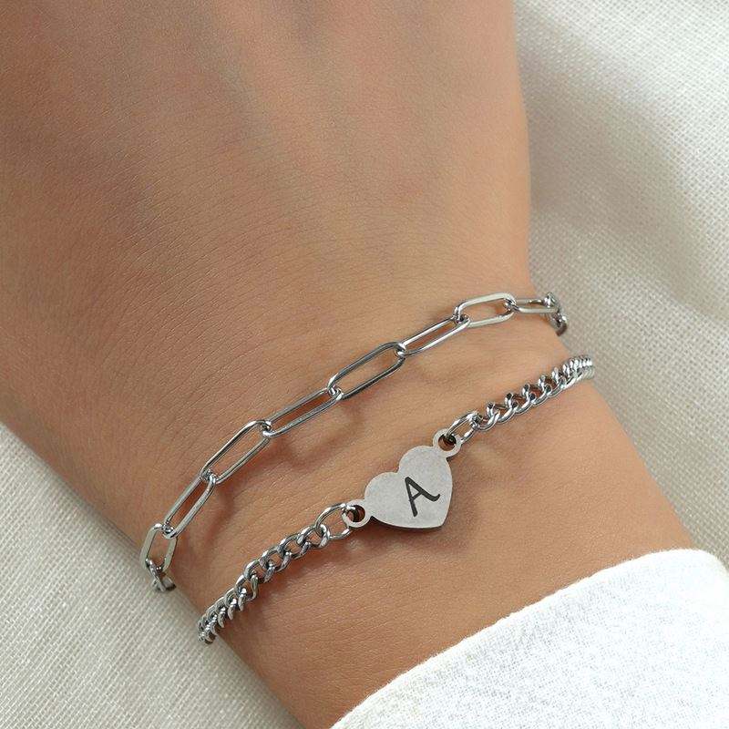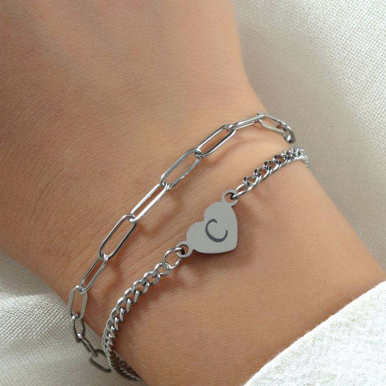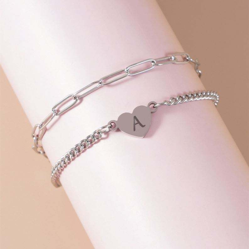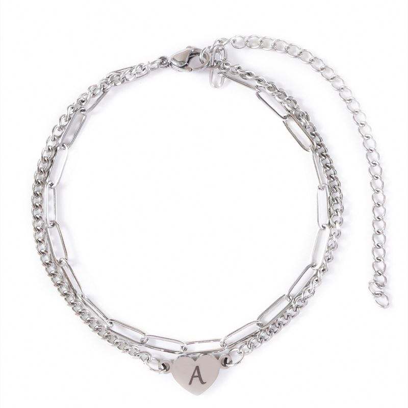 Hot Sale Titanium Steel love Initials Bracelet Simple Stainless Steel Multi-layer Bracelet for Women