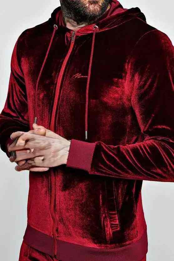 ชุดวอร์มผ้ากำมะหยี่สำหรับผู้ชายชุดวอร์มผ้ากำมะหยี่มีกระเป๋าด้านข้างระบายอากาศได้ดีโลโก้ตามสั่ง