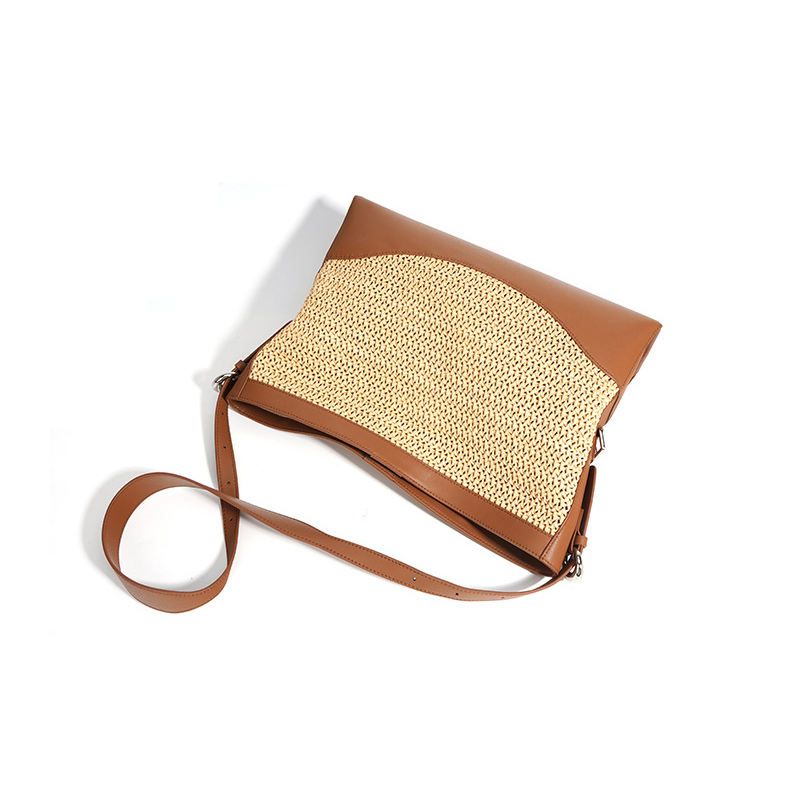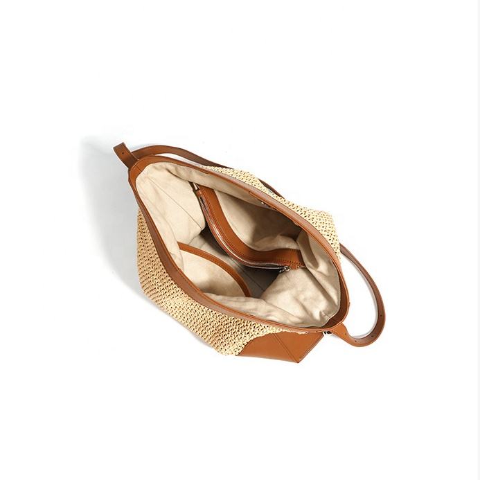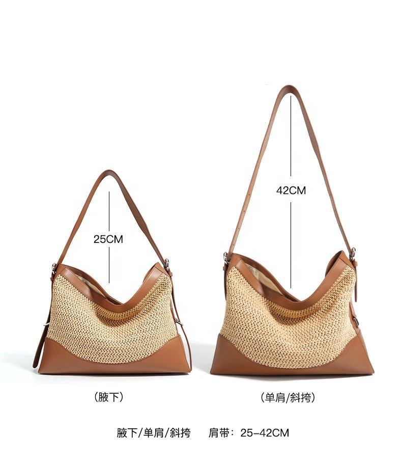 กระเป๋าโท้ทสานราฟเฟียสำหรับผู้หญิง ลดราคาสุดฮิต กระเป๋าสะพายไหล่สำหรับฤดูร้อนและชายหาด พร้อมสายสะพายยาว กระเป๋าหนังแท้ทรงถัง