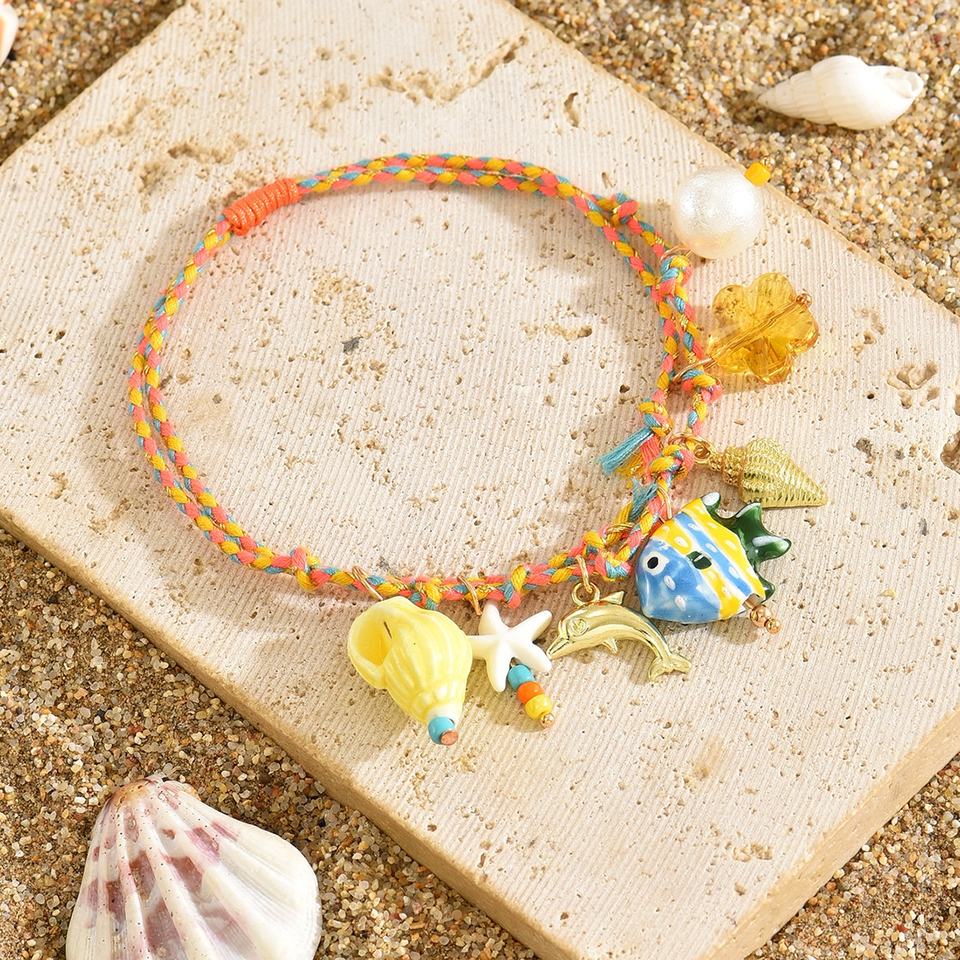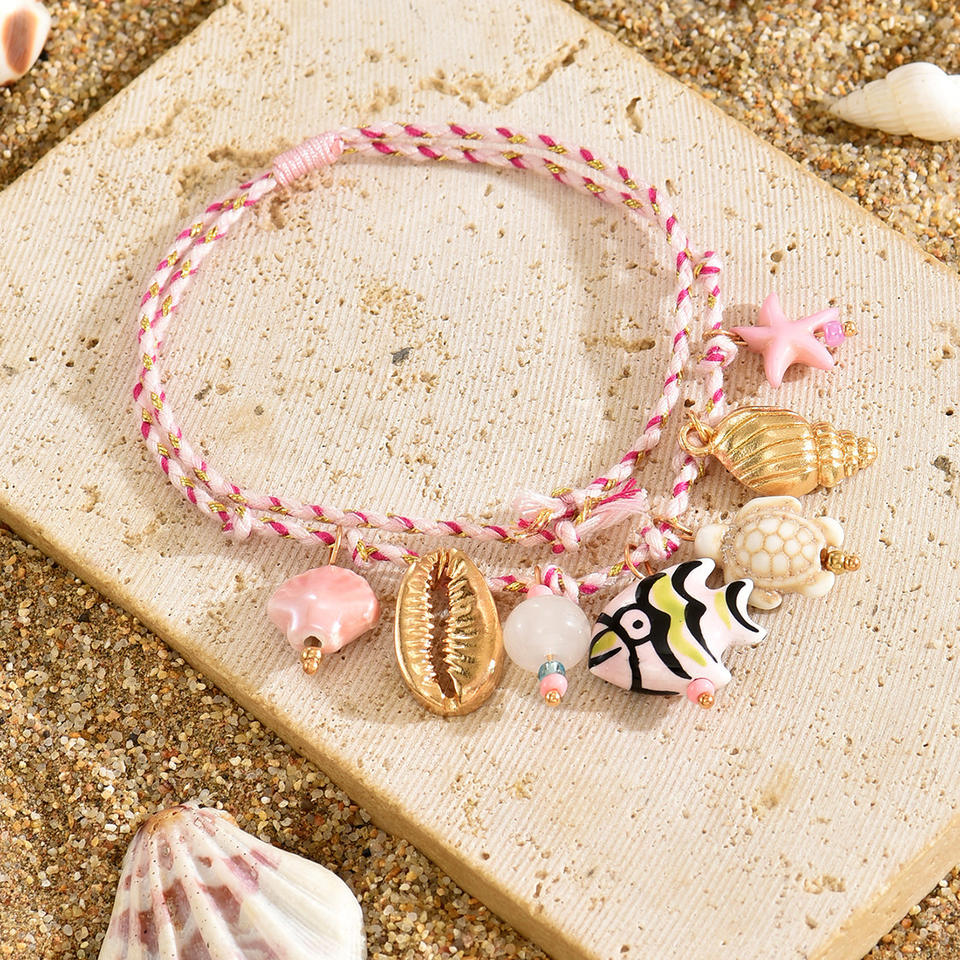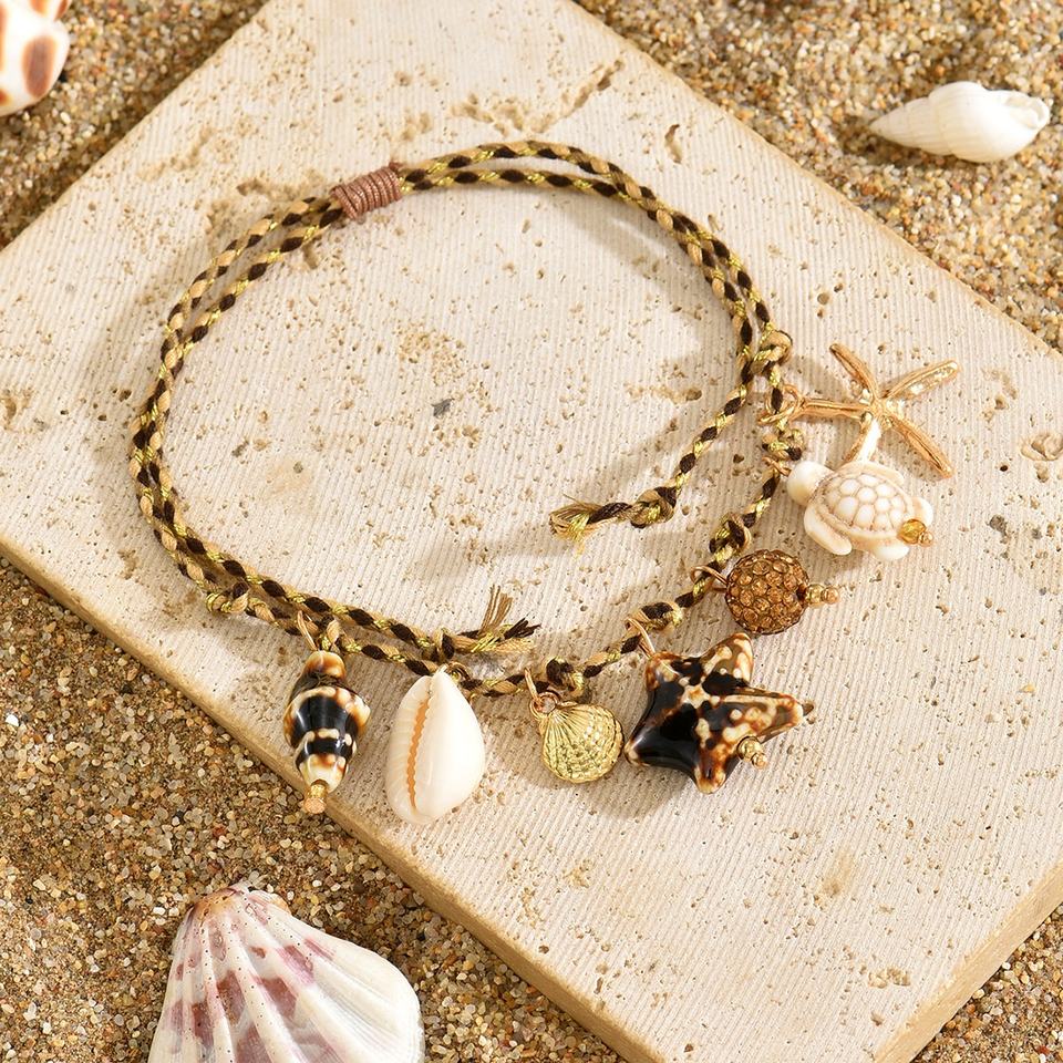 ขายร้อนสร้อยข้อเท้าสีสันสไตล์โบฮีเมียนเครื่องประดับเท้าปลาดาวขนาดเล็กเส้นขี้ผึ้งทอกำไลข้อเท้าแบบปรับได้ส่วนใหญ่เปลือก