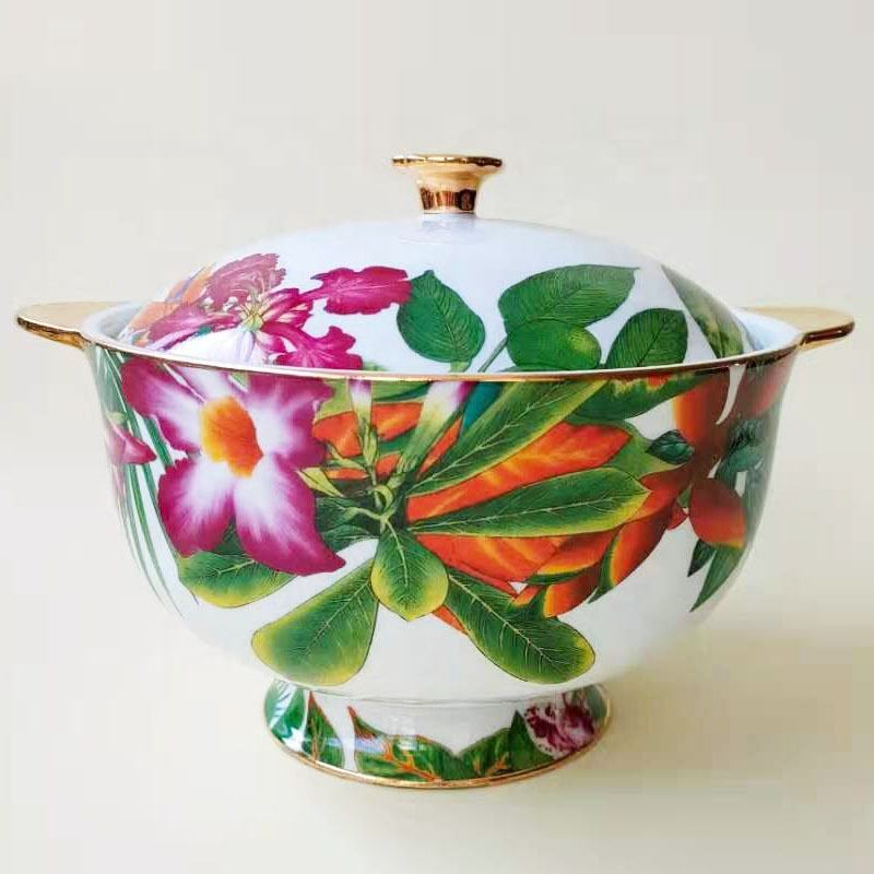 ชุดอาหารเซรามิกโบนไชน่าลายป่าฝนเขตร้อน