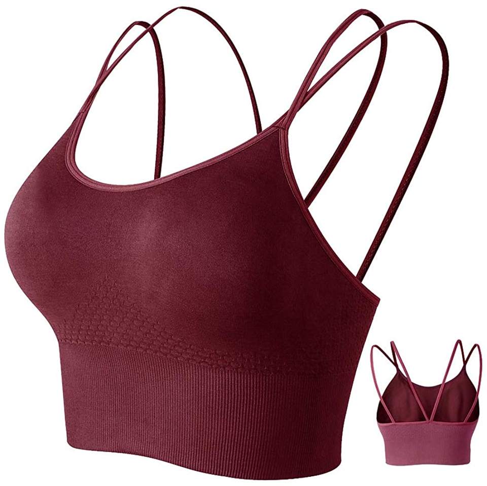 เสื้อชั้นในกีฬาโยคะผู้หญิง คอกลม ไซส์ใหญ่ เซ็กซี่ แห้งเร็ว สีพื้น ไม่มีแขน โลโก้ด้านหน้า ลดราคา