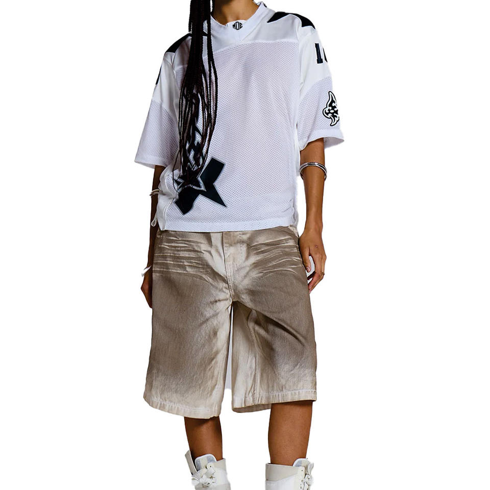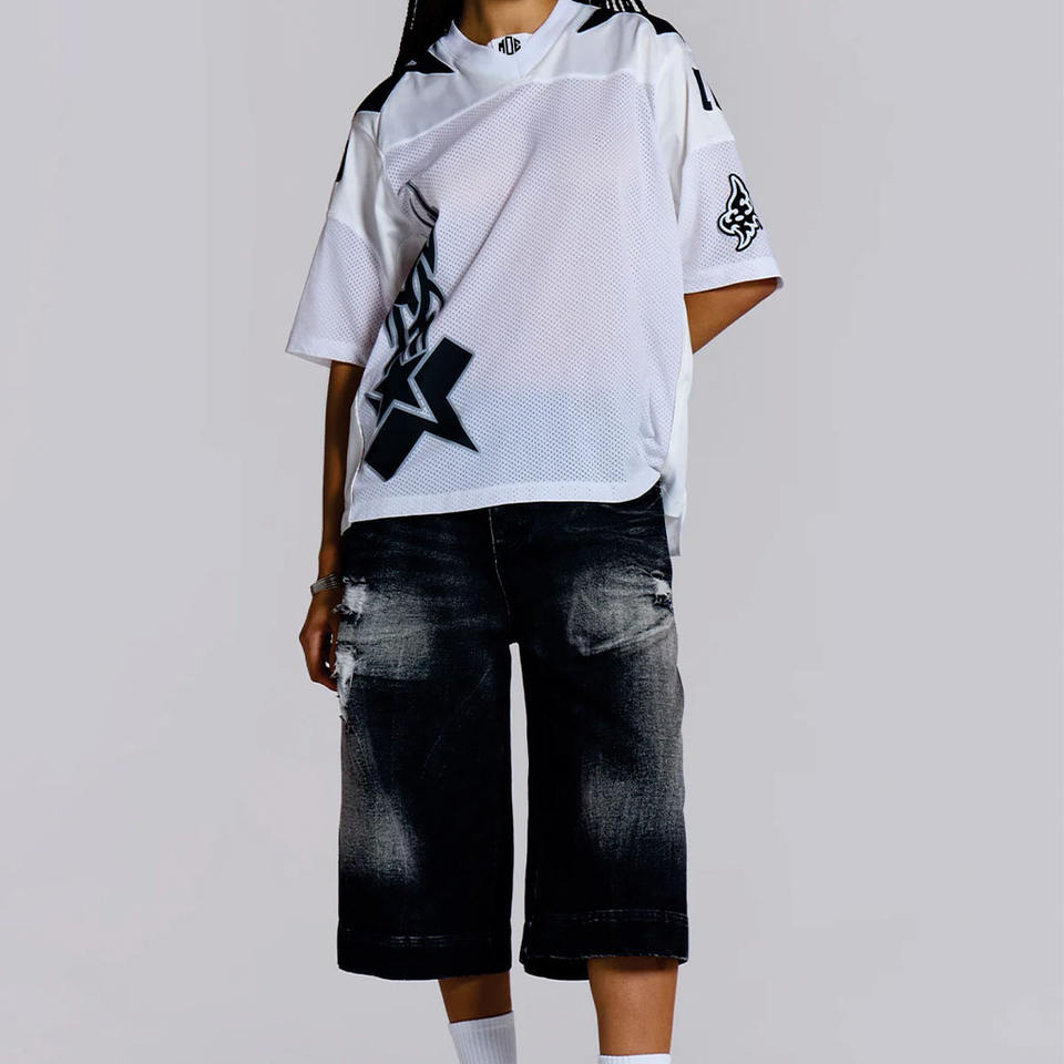 เสื้อฟุตบอลอเมริกันตาข่ายสีขาวแบบยูนิเซ็กซ์ ลดราคาพิเศษ ตกแต่งลายดาวแบบแอพพลิเคชั่น ทรงโอเวอร์ไซส์ รับผลิตตามแบบทีมฟุตบอล บริการ OEM