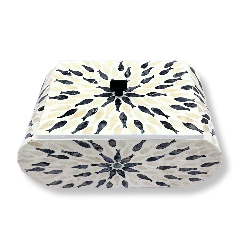 กล่องสี่เหลี่ยมไม้ไผ่ฝังลายปลาทำด้วยมือแบรนด์เวียดนาม