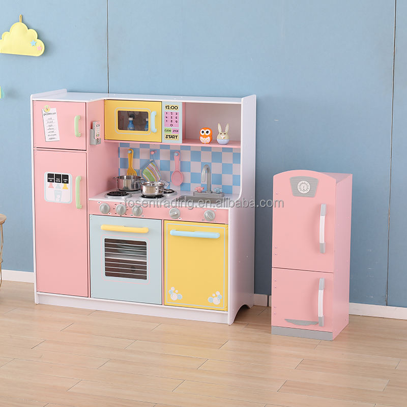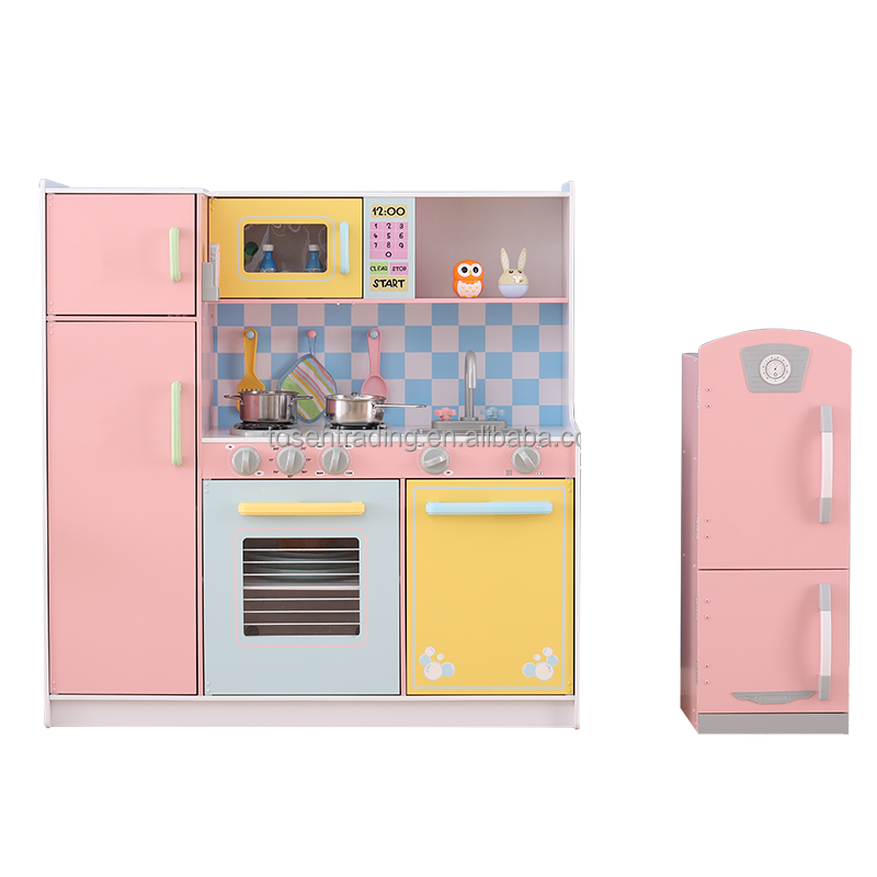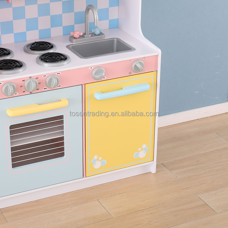 ครัวไม้สไตล์วินเทจสำหรับเด็ก พร้อมเตาอบ ก๊อกน้ำ หัวเตา และอุปกรณ์ทำอาหาร - สีพาสเทล ลดราคาพิเศษ