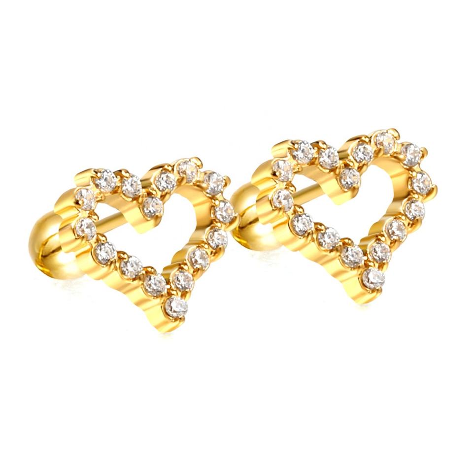 ต่างหูแฟชั่นกันน้ำ ลดราคาพิเศษ ประดับเพชร สแตนเลสชุบทอง 18k รูปหัวใจแบบกลวง สำหรับผู้หญิง