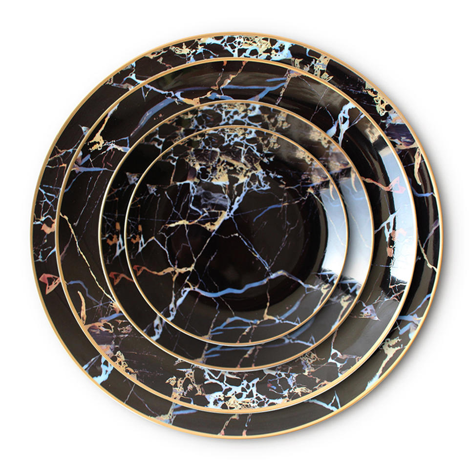 ชุดภาชนะอาหารจีนลายกระดูกตะวันตกจานเซรามิกหินอ่อนอุปกรณ์บนโต๊ะอาหารดีไซน์ไม่เหมือนใคร