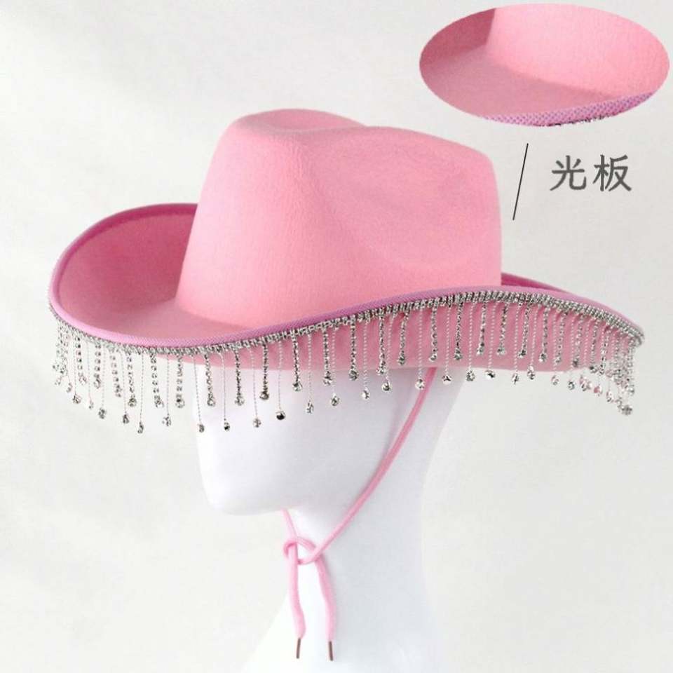 หมวกคาวบอยสไตล์ตะวันตกสำหรับเจ้าบ่าวและเจ้าสาว งานปาร์ตี้ ประดับเพชร สีชมพู ลดราคา