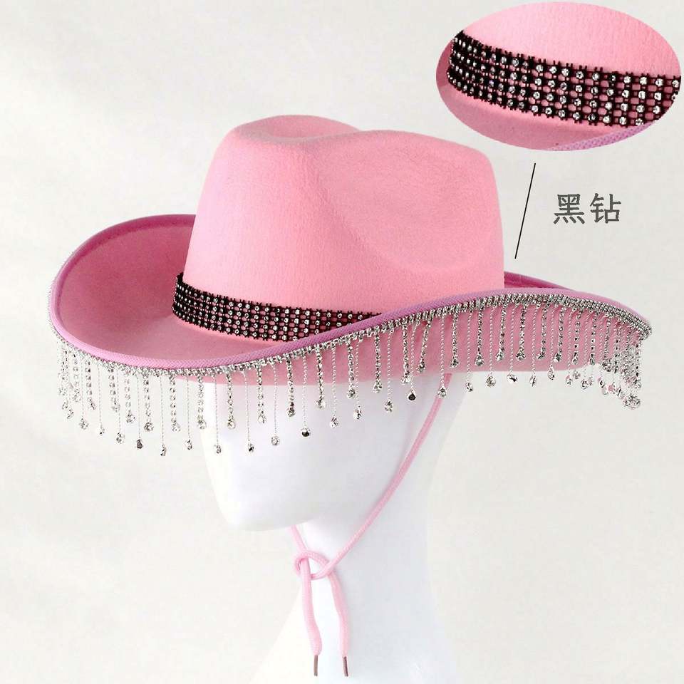 หมวกคาวบอยประดับพลอยเทียม สีชมพู