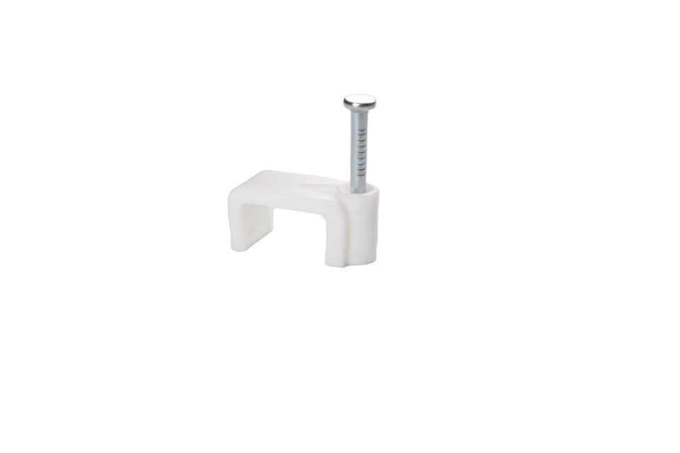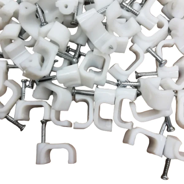 คลิปหนีบสายเคเบิลสีขาวพลาสติกแบน4มม. 5มม. 6มม. 7มม. 8มม. พร้อมตะปูเหล็กปรับได้สำหรับการจัดการสายเคเบิล