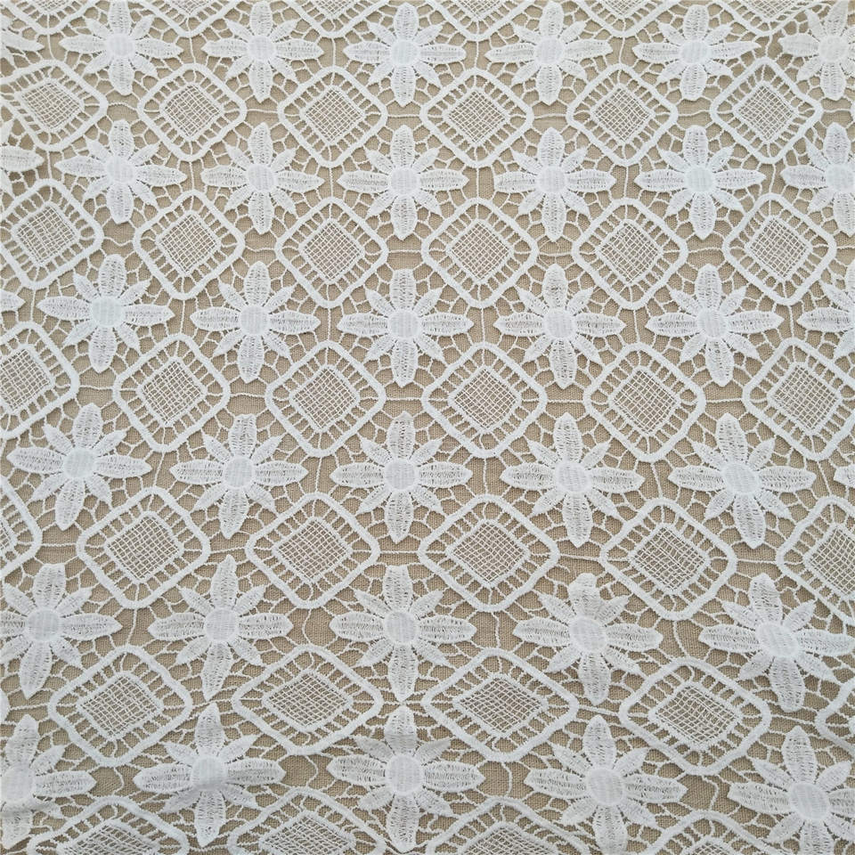 ผ้าลูกไม้กิปัวร์ลายดอกไม้สีขาว ปักลายแบบแอฟริกัน เป็นมิตรกับสิ่งแวดล้อม ละลายน้ำได้ สำหรับตัดเย็บเสื้อผ้าและของตกแต่งบ้าน ลดราคาพิเศษ