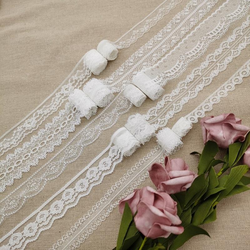 ผ้าลูกไม้สีขาวแบบแคบเป็นมิตรต่อสิ่งแวดล้อมสำหรับเย็บตุ๊กตาและห่อของขวัญ