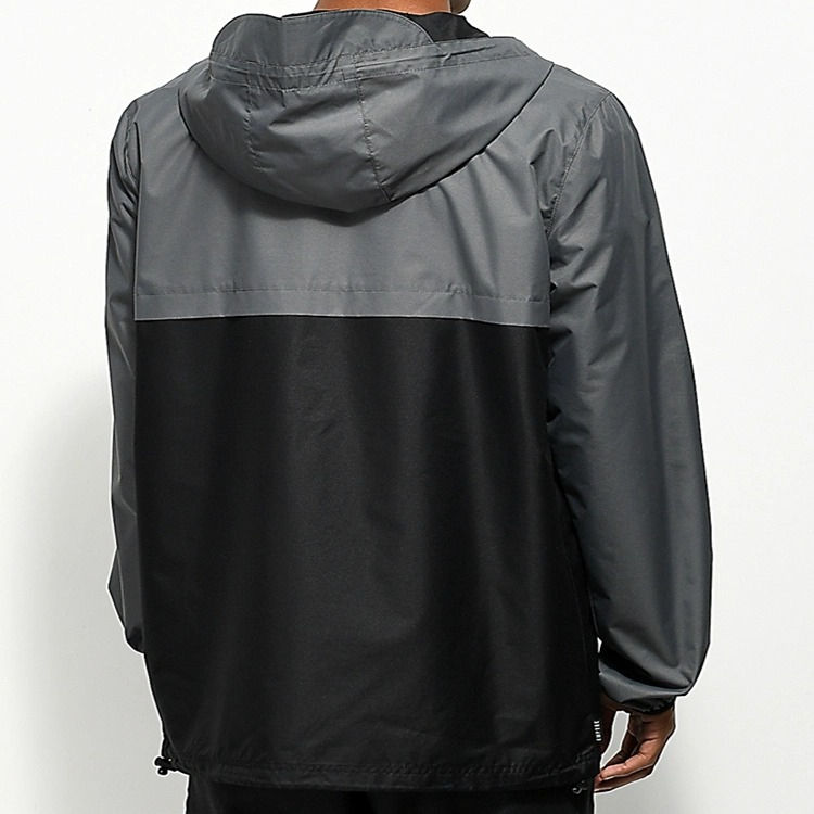แจ็กเก็ตกันลมแบบสวมมีฮู้ดมีซิปครึ่งแผ่นผ้าแคนวาสสีบล็อกสองสีตามสั่ง