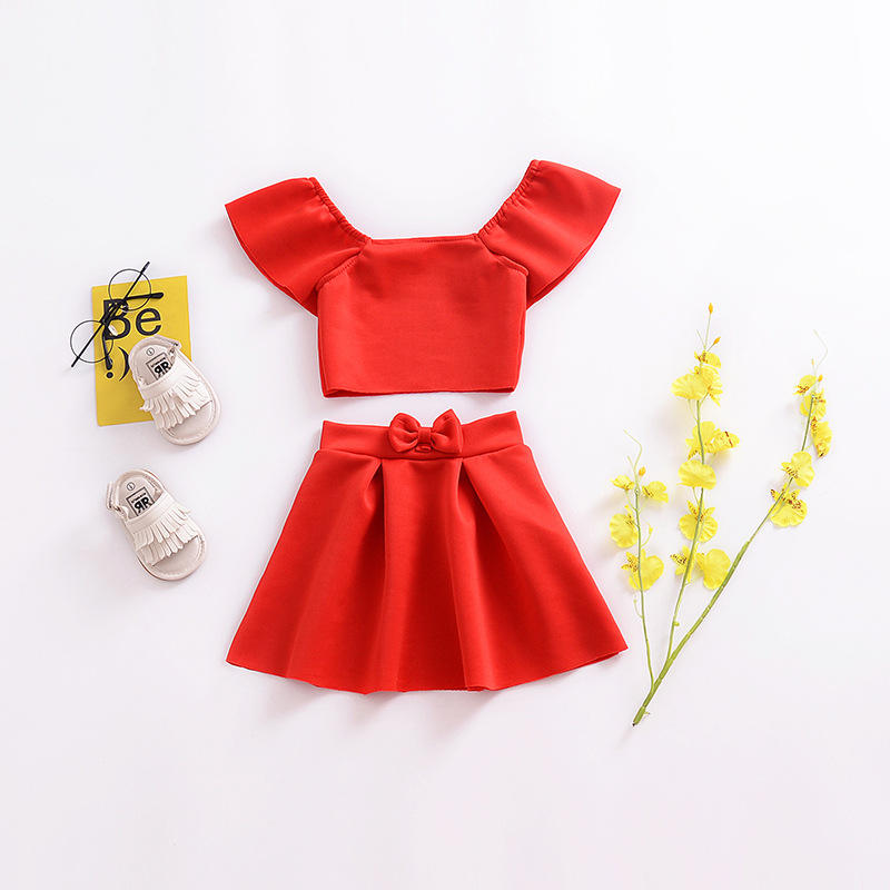 เสื้อผ้าเด็กชุดเซ็ตใหม่ขายส่งราคาพิเศษ เสื้อสีแดงและชุดเดรสสีแดงแบบจีน