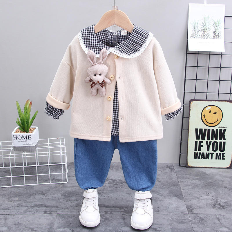 ชื่อสินค้า:ชุดเสื้อผ้าเด็กผู้หญิง เสื้อเชิ้ตและกางเกงยีนส์เดนิม ชุดรัดรูปสำหรับเด็ก