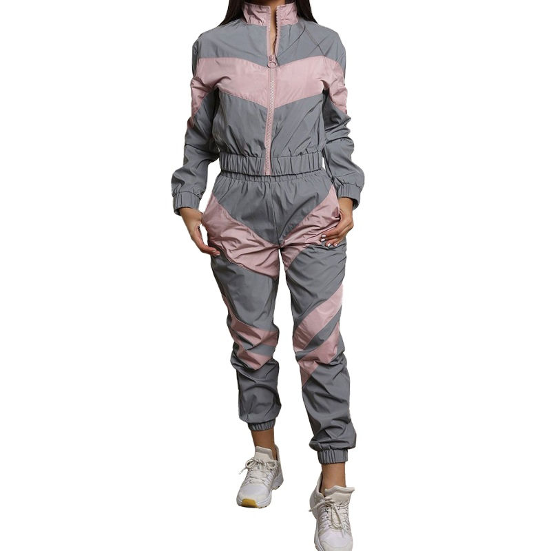 ชุดวอร์มสะท้อนแสงสำหรับผู้หญิงเสื้อกันลมกันน้ำแบบเรียบ