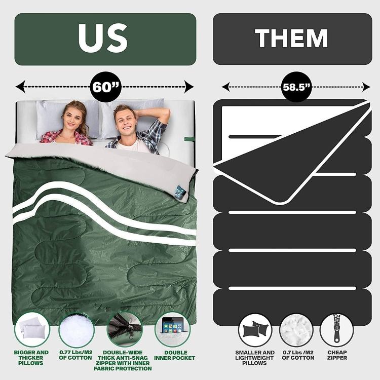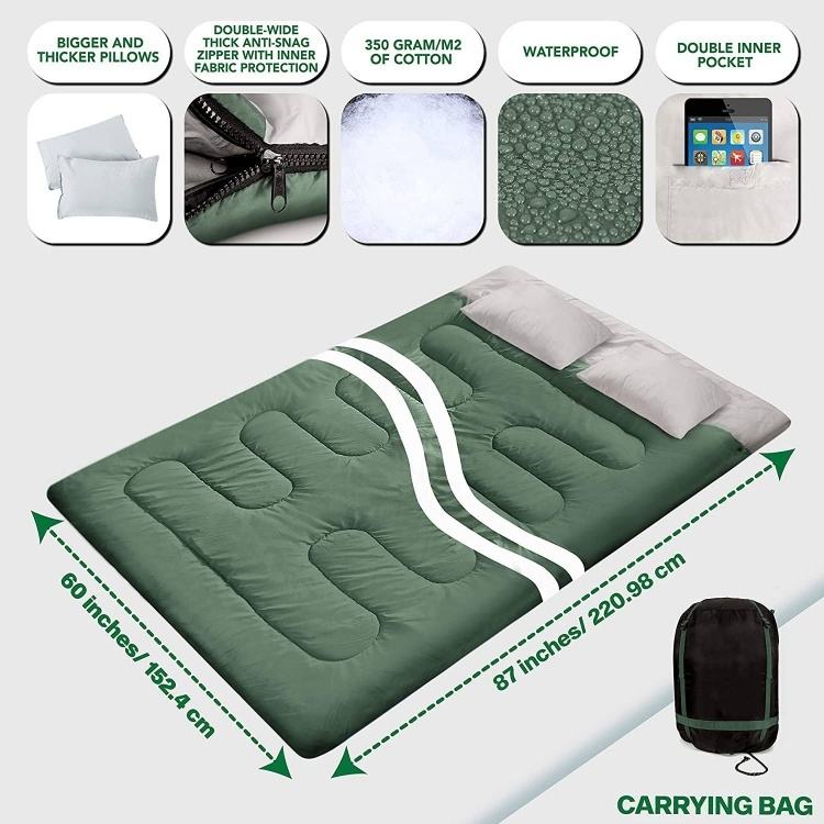 ขายดี: ถุงนอนป้องกันลมและงานหนักสำหรับการตั้งแคมป์กลางแจ้งแบบประหยัด-ขนาดสองเท่า