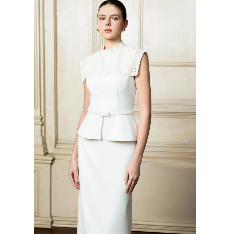 เสื้อผ้าบูติกของผู้หญิงเสื้อเพ็บลั่มผ้าใยสังเคราะห์พร้อมเข็มขัดผ้าสแปนเด็กซ์