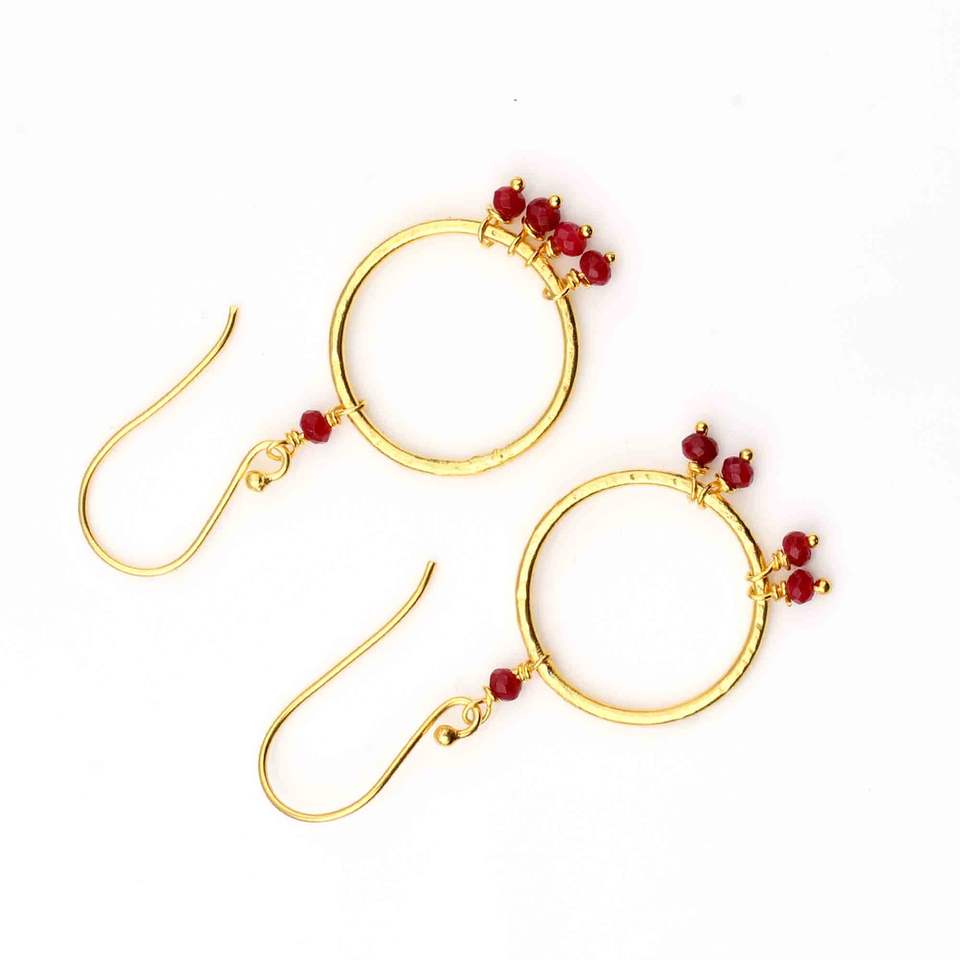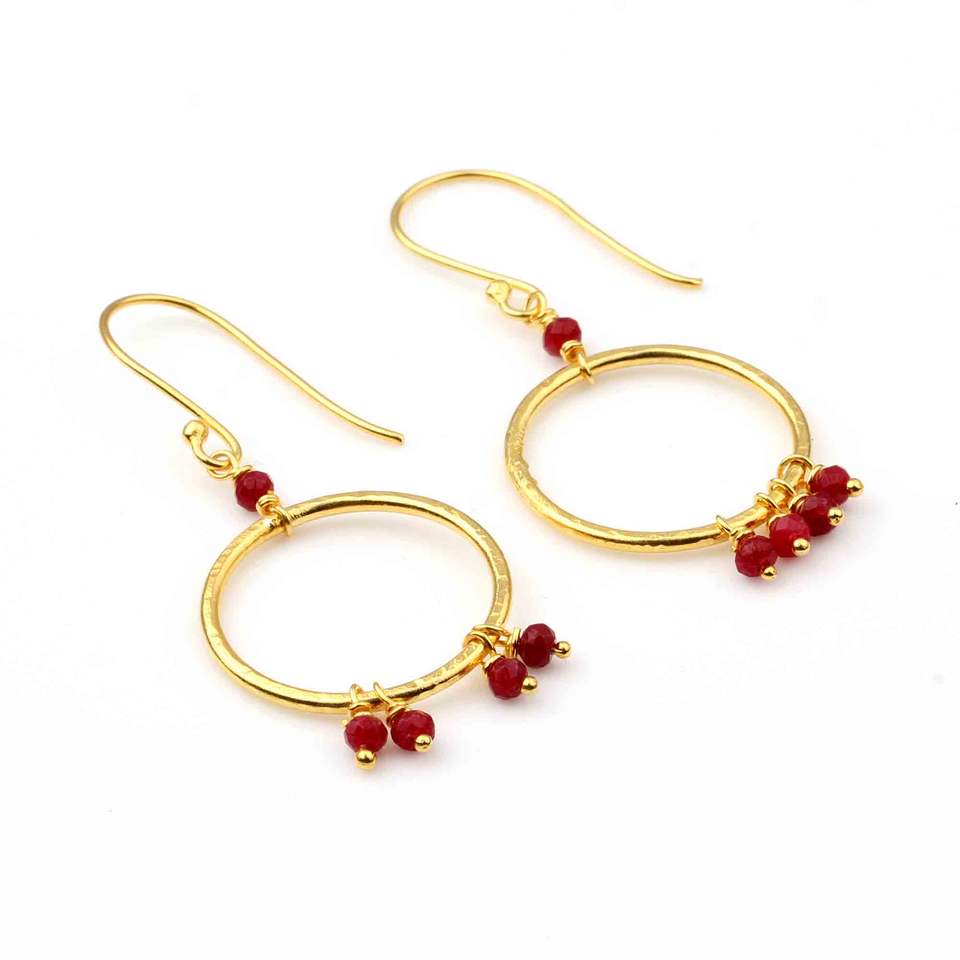 ชื่อผลิตภัณฑ์:ต่างหูลูกปัดหินทับทิมย้อมสีเงินสเตอร์ลิงชุบทอง