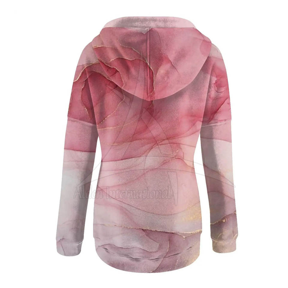 เสื้อฮู้ดดี้ผู้หญิงสำหรับฤดูหนาว ผลิตจากวัสดุรักษ์โลก ด้วยเทคนิคการพิมพ์แบบซับลิเมชั่น รับออกแบบตามสั่ง ราคาขายส่งสำหรับขายออนไลน์ ผลิตในประเทศปากีสถาน