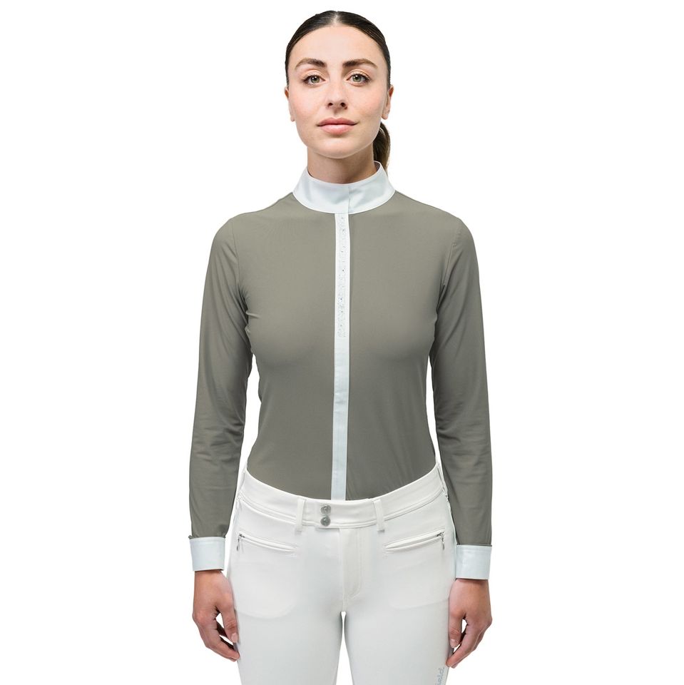 เสื้อโปโลสำหรับขี่ม้าของผู้หญิงมีปกผ้าป๊อปลินเสื้อประสิทธิภาพทางเทคนิคเสื้อสำหรับขี่ม้า