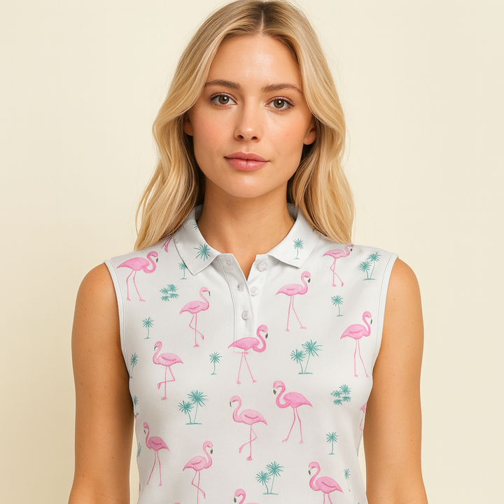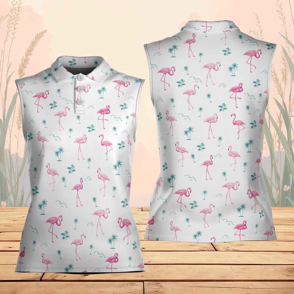 เสื้อโปโลแขนกุดพิมพ์ลายนกฟลามิงโกสำหรับผู้หญิงเสื้อโปโลระบายอากาศได้ดีออกแบบโลโก้ได้ตามต้องการฤดูร้อน