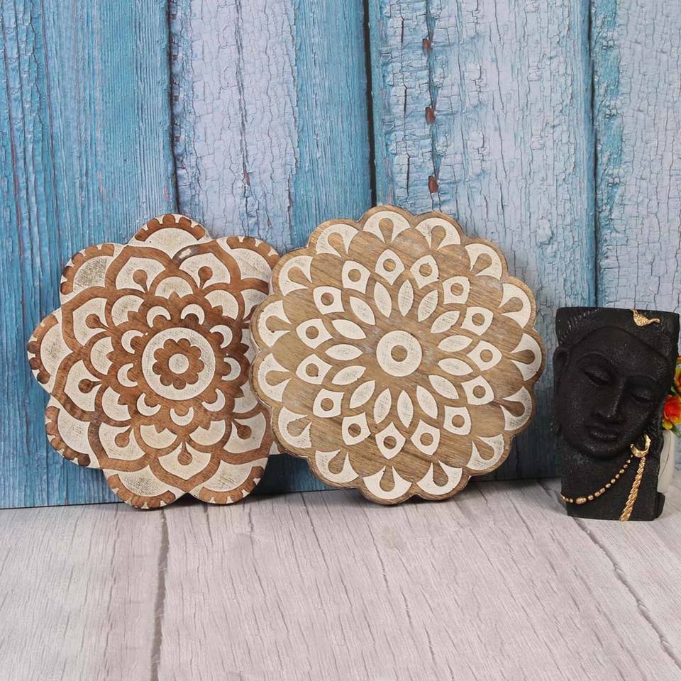 ขายร้อนชุดไม้ 2 รอบ Trivet สําหรับจานร้อนจานและหม้อผู้ถือไม้มะม่วงร้อน Pad สําหรับห้องครัว & ตกแต่งโต๊ะรับประทานอาหาร