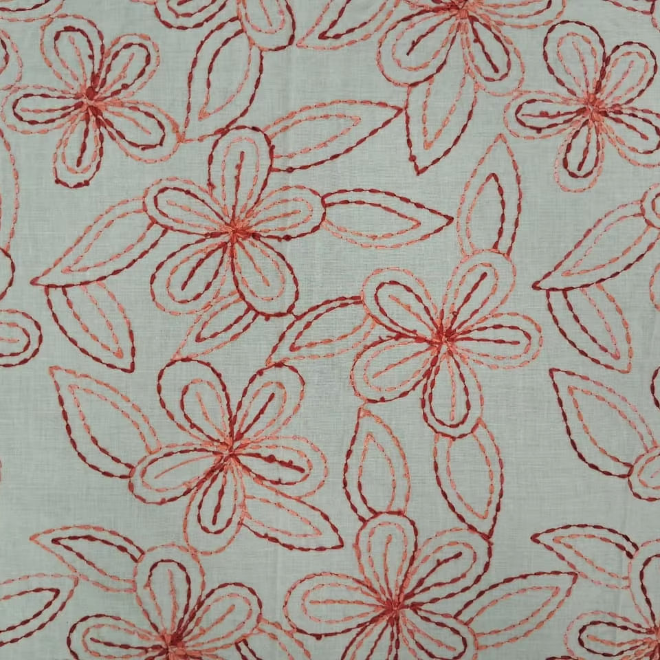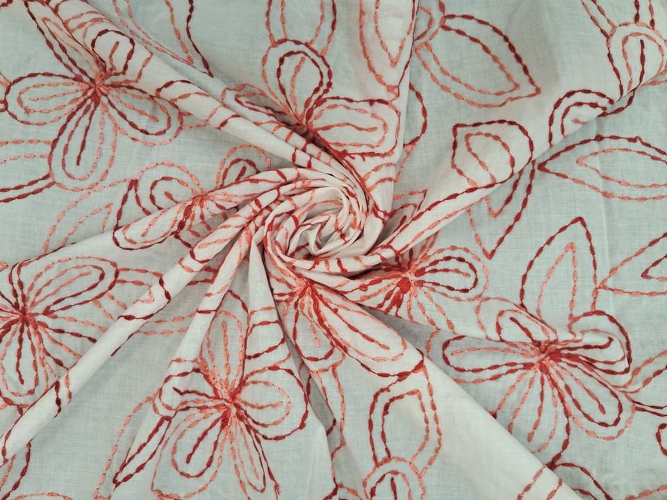 White Cotton Floral Outline Embroidered Fabric