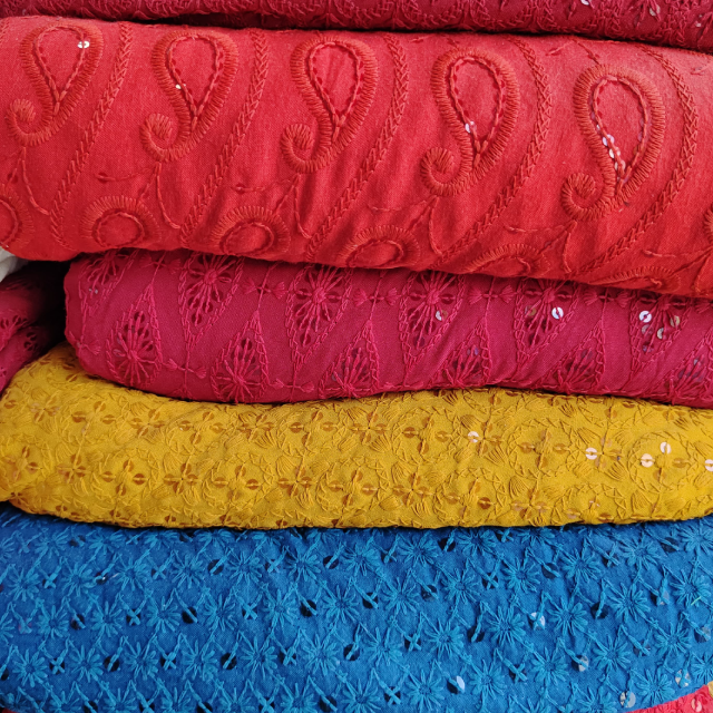 ผ้าเรยอนปักลายผ้าอินเดียผ้าสำหรับทำชุดเดรส