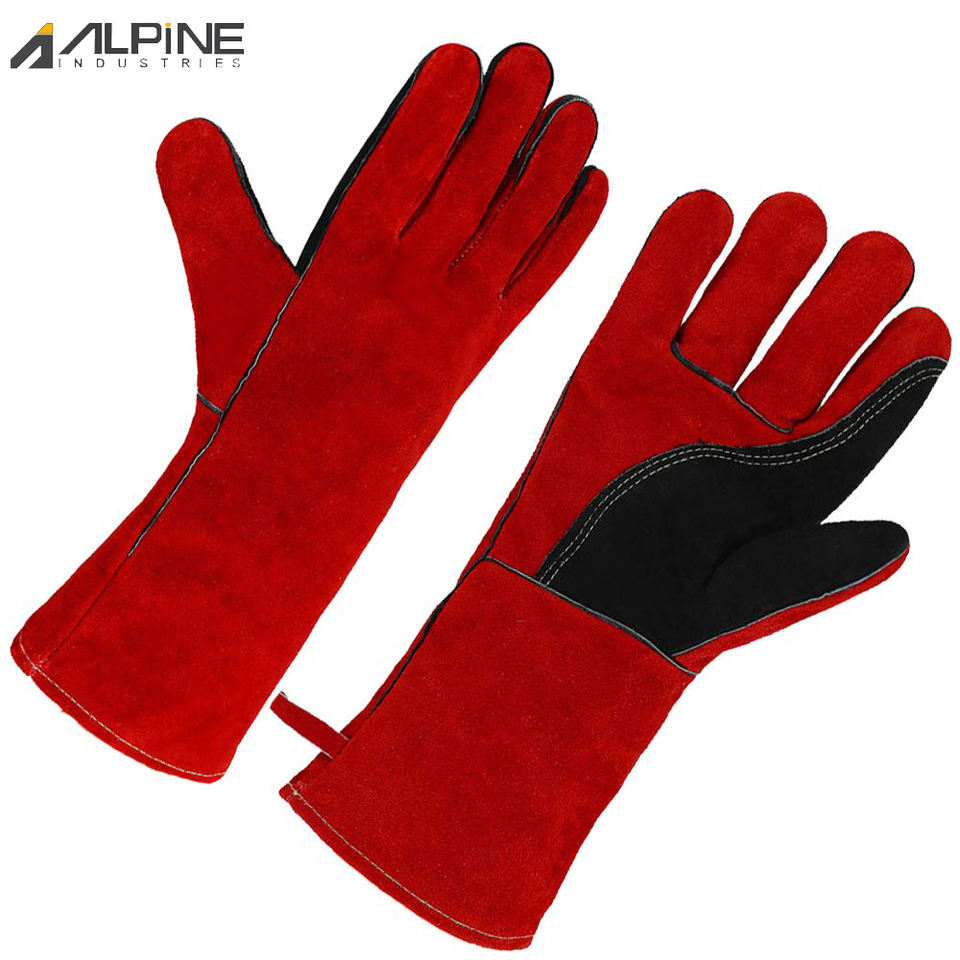 ถุงมือช่างเชื่อม Mig ขนาด XL, ถุงมือสำหรับงานเชื่อมหนังวัวเคลือบยางผ้าฝ้ายทนความร้อนถุงมือสำหรับช่างเชื่อม