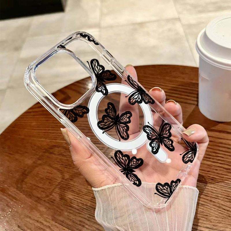 เคสโทรศัพท์ลายผีเสื้อลดราคา สำหรับ iPhone 13 Pro Max 14 15 16 Plus 12 11 17 Pro ฝาหลังใสอะคริลิคแม่เหล็ก