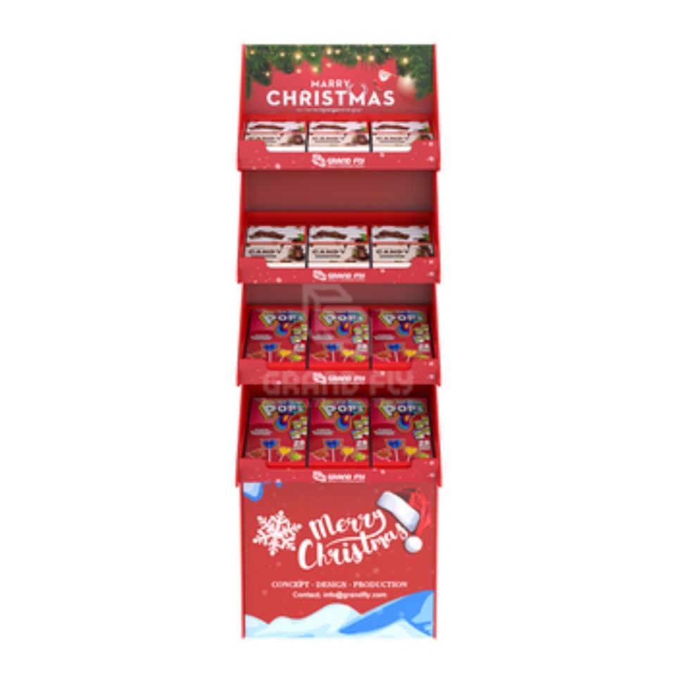 ชั้นวางแสดงสินค้าชั้นตะขอกระดาษแข็งลูกฟูกสำหรับ Funko สำหรับถุงเท้าคริสต์มาสและตะขอกระดาษ