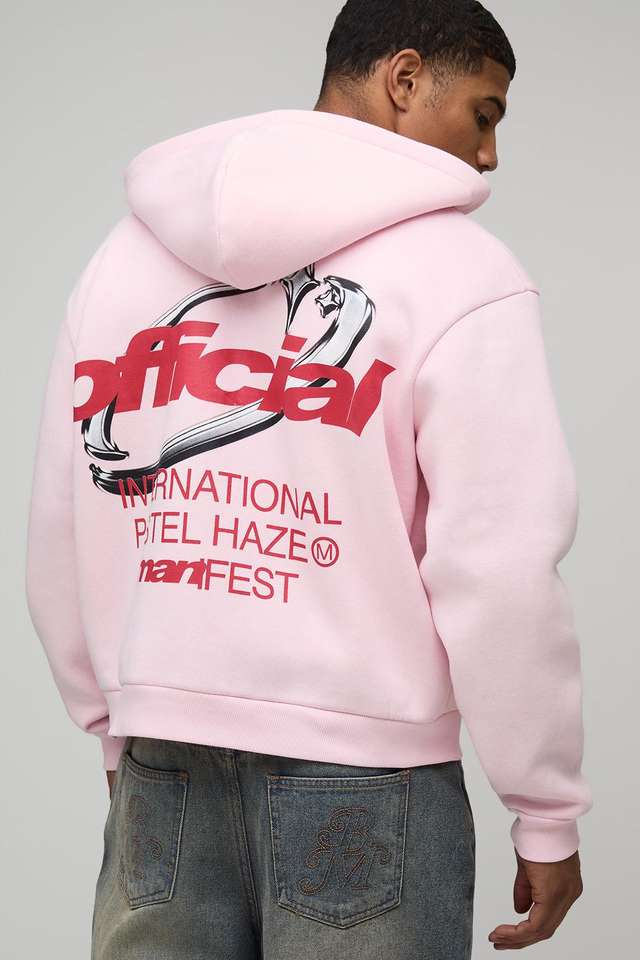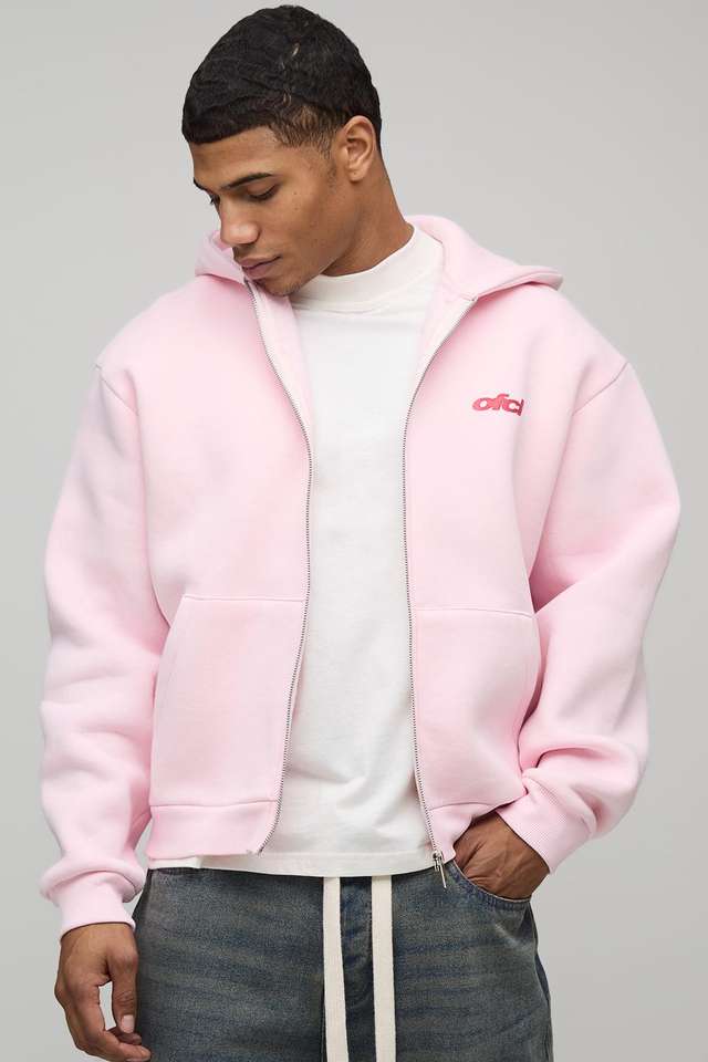 เสื้อฮู้ดสวมหัวผ้าฝ้ายหนาเสื้อฮู้ดโอเวอร์ไซส์เปิดไหล่ตกแบบกำหนดเองสีชมพู