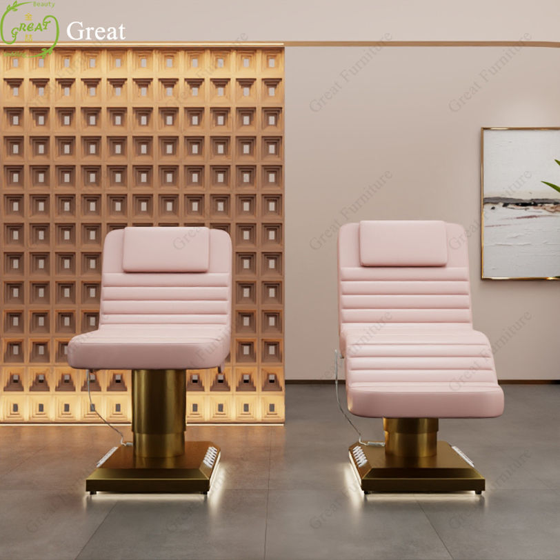 โต๊ะนวดหนังสีชมพู3มอเตอร์เตียงเครื่องสำอางฐานทองเตียงสปาใบหน้าไฟฟ้าพร้อมระบบควบคุมการเดินเท้า