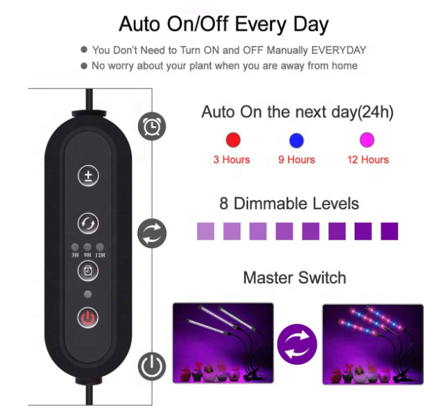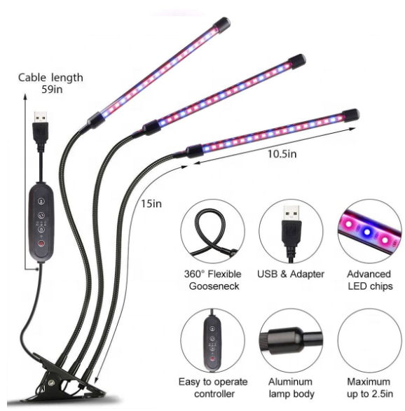 ไฟ LED ดอกเติบโตได้3หัว30W ปรับได้สำหรับพืชเติบโตในร่ม