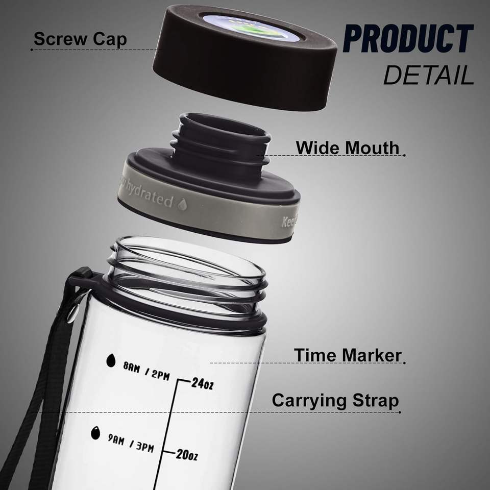 ขวดน้ำความจุสูงปราศจาก BPA พร้อมตัวบอกเวลา