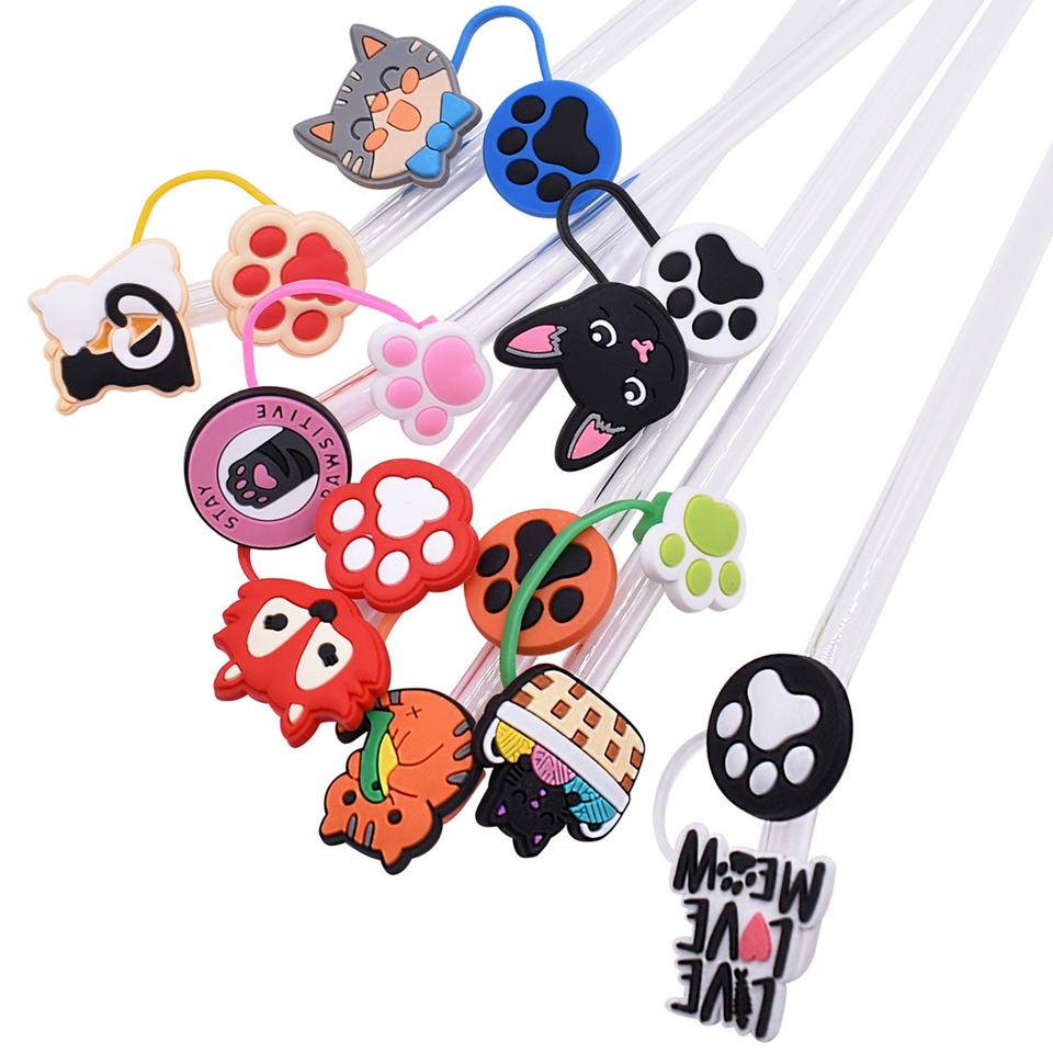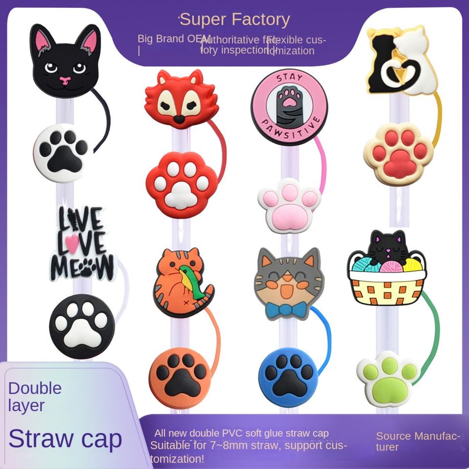 ฝาครอบหลอดแก้ว 8 มม. ลายการ์ตูนแมว ป้องกันฝุ่น สำหรับเครื่องดื่มชา sữa ขายดี